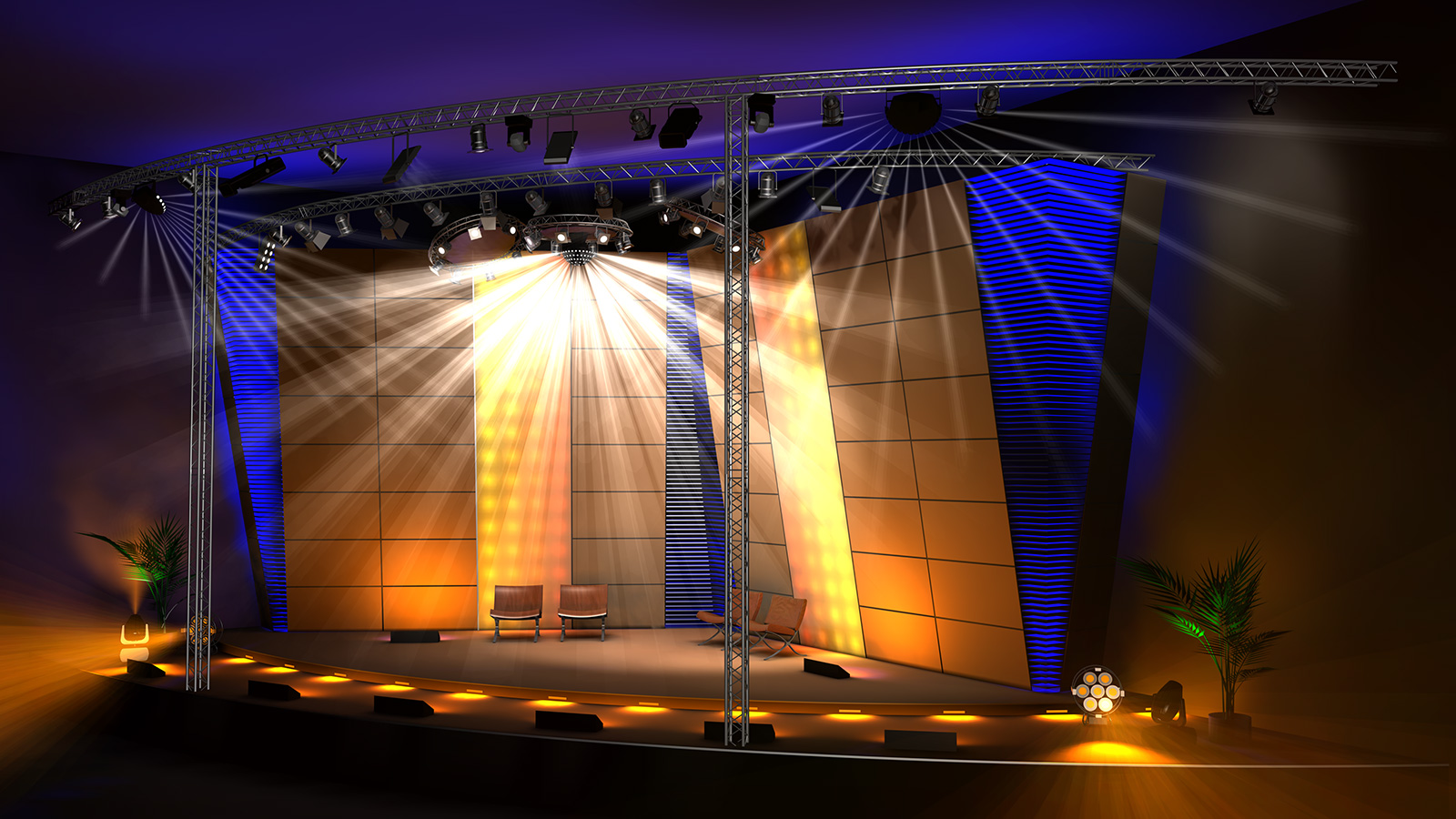 - Lighting simulation with LED, Gobo projections and animated lighting effects